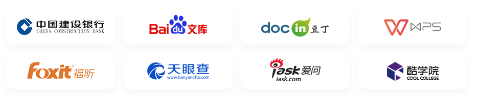 中國建設銀行、百度文庫、豆丁網、WPS、福昕PDF、天眼查、新浪愛問、阿里釘釘酷學院法律服務提供商